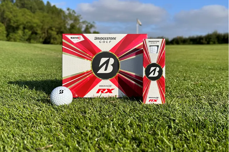The Bridgestone Tour B RX is a golf ball designed for golfers with swing speeds under 105 mph, offering a blend of increased distance and enhanced feel and control around the green. It features a REACTIV X System with a smart cover and a gradational compression core for explosive off-the-tee distance and forgiveness.