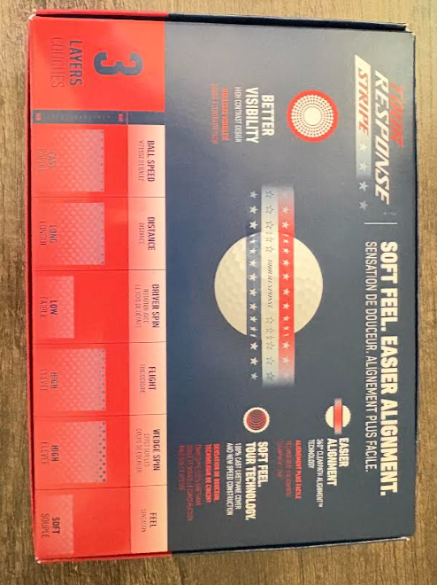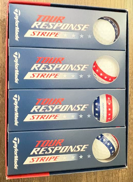The TaylorMade Tour Response Stripe USA is a limited-edition golf ball featuring a bold red, white, and blue alignment stripe that provides enhanced visibility and immediate feedback on putts for better consistency and roll. It offers tour-level performance, combining a soft, high-spin cast urethane cover with a responsive core for soft feel and increased distance, all at a player-friendly price point.